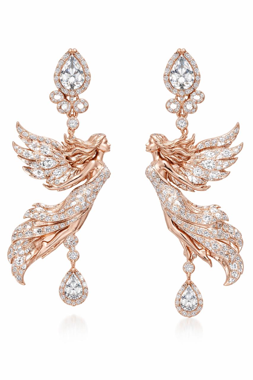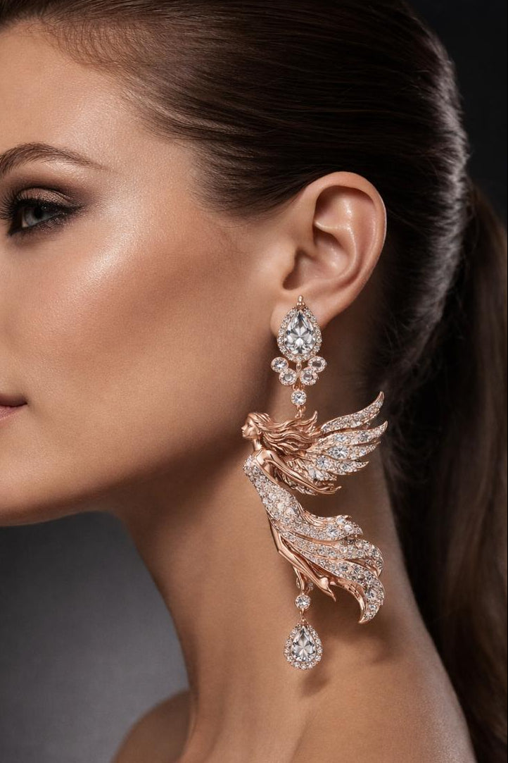 Sculpted like a moment frozen in flight, The Celestial Muse Earrings are a tribute to movement, freedom, and feminine power. Each earring features a finely detailed winged figure, captured mid-air, with flowing lines that convey motion and lightness despite the intricate craftsmanship.