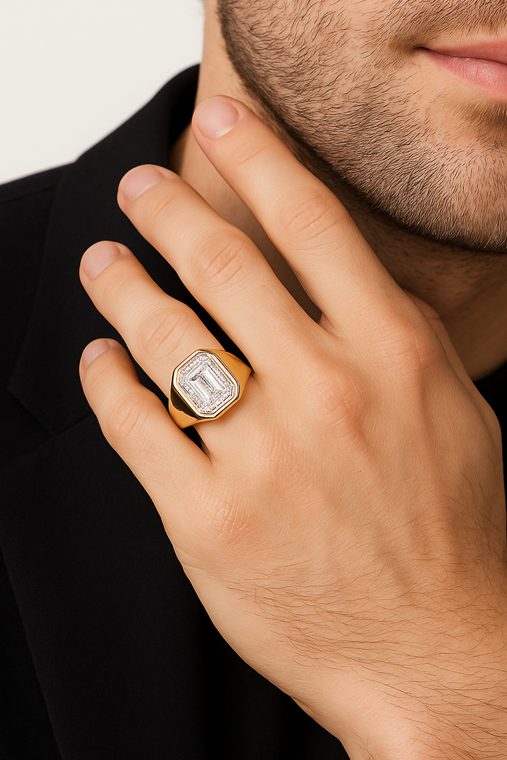 A symbol of enduring strength and steadfast devotion, The Sentinel Ring embodies quiet power and refined elegance. Centred with a 3-carat lab-grown diamond, IGI certified for its brilliance and quality, this design merges timeless craftsmanship with contemporary minimalism. The bezel setting enhances the diamond’s clarity and luminosity while ensuring durability and everyday wearability.