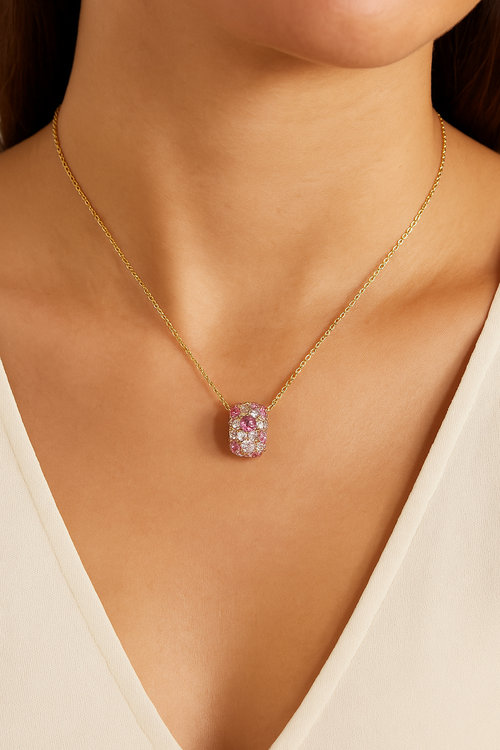 To maintain the beauty of your Rosaline Pendant, avoid contact with water, perfume, and harsh chemicals. Gently wipe it with a soft cloth after each wear and store it separately in a lined jewellery box. With proper care, it will continue to radiate its delicate charm for years to come.
