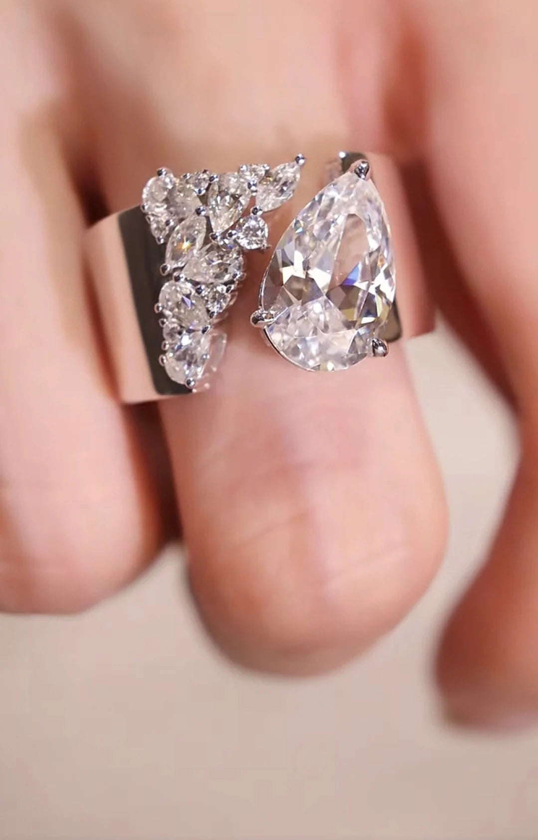 The Symmetria Ring celebrates balance, beauty, and the art of perfect form. Its graceful water-drop silhouette captures the essence of symmetry found in nature, reflecting harmony in every curve and contour. Designed with radiant lab sapphires, the ring glimmers with a deep, enchanting brilliance that shifts effortlessly with the light.